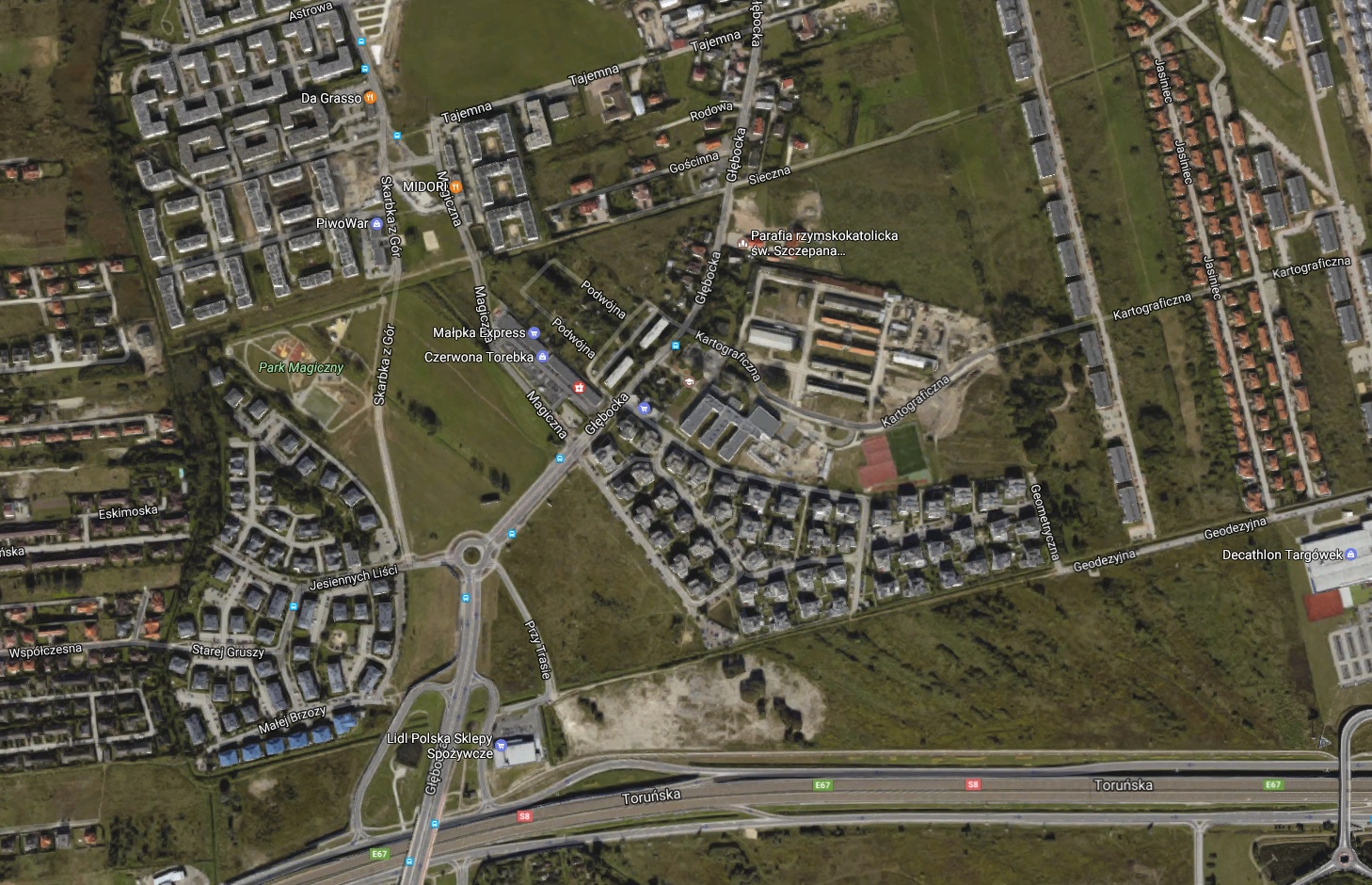 Park Handlowy „Czerwona Torebka”, lokalizacja Parku handlowego w środku olbrzymiego osiedla mieszkaniowego Lewandów, w bliskiej odległości S8, obiekt składający się z 36 modułów w pełni wynajęty.