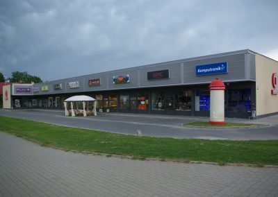 Podział lokali: 10 lokali użytkowych ( rtv agd, apteka, odzieżowy, obuwniczy, muzyczny, telekomunikacyjny, piekarnia, mięsny, bankomat, paczkomat)